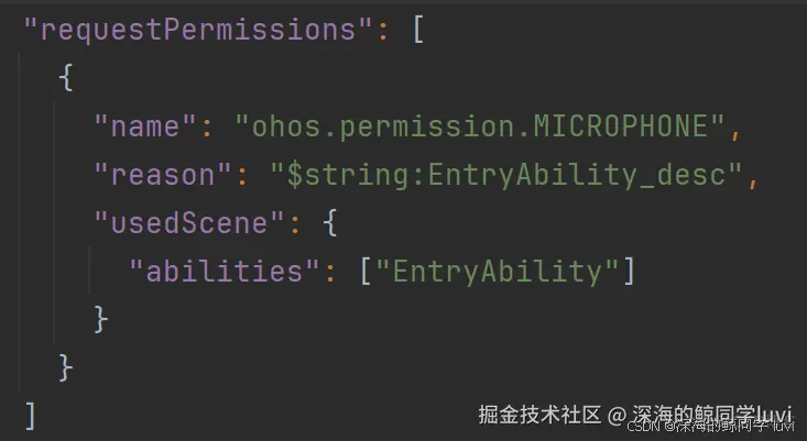 需要录音,必不可少的是麦克风权限,需要在 module.json5 中添加 ohos.permission.MICROPHONE 权限。
