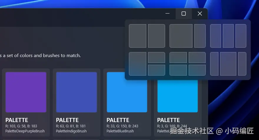 标题栏提供自定义的 Windows 11 SnapLayout 功能