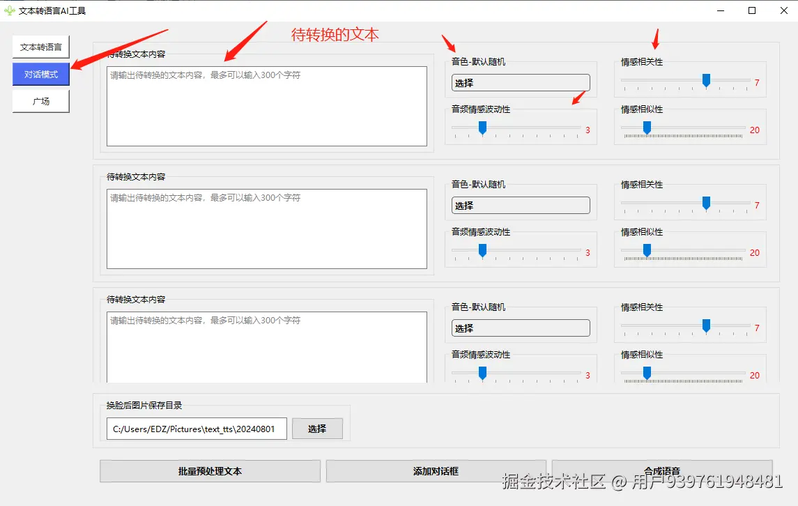 对话模式就是批量处理文本合成音频的功能,主要是区分合成音频人的声音
