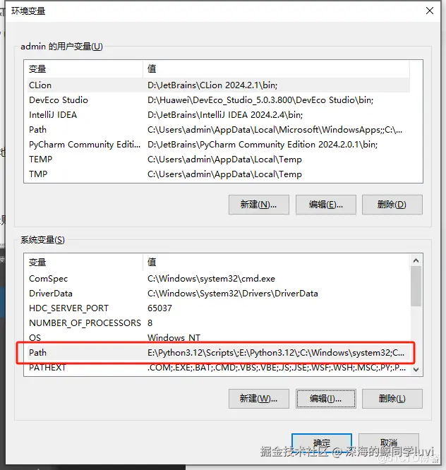 - 配置环境变量,直接在菜单搜索“环境”二字即可,打开“编辑账户的环境变量”,双击“系统变量”中的Path,点击新建,粘入刚才复制的hdc目录地址,点击确认。