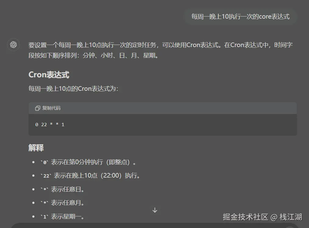 再如core表达式也是类似的,比如:每周一晚上10执行一次的core表达式