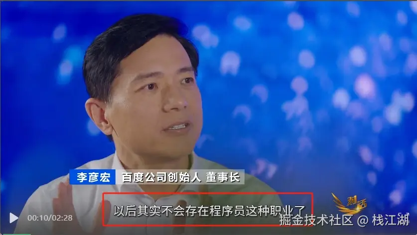 2024《对话·开年说》系列中,百度公司创始人、董事长李彦宏在节目中表示“以后不会存在程序员这种职业了”