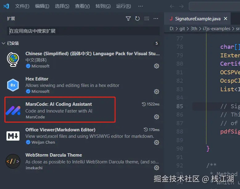 JetBrains与 Visual Studio Code都可以安装,比如下面就是Visual Studio Code中编程助手的安装,在市场搜索后进行安装。