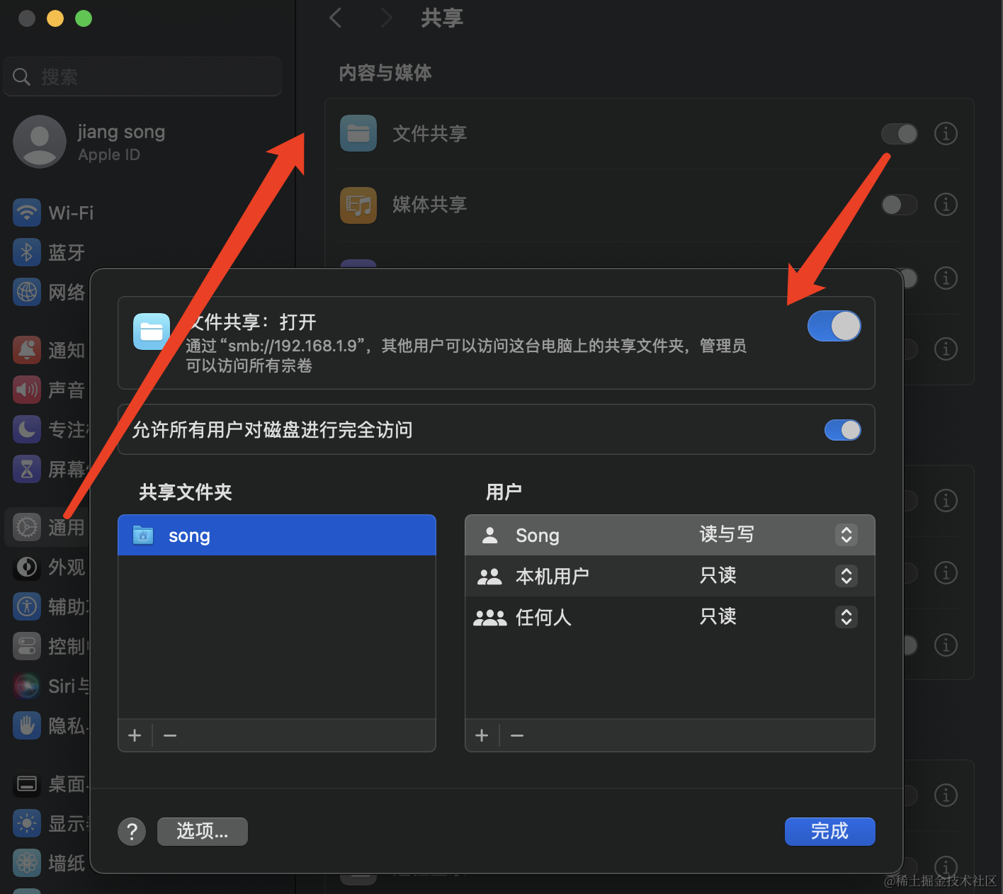 如果你选择“Everyone”访问,记得在Windows里把“需要密码访问”选项去掉,不然就需要用Windows的用户名和密码来访问了。🔐