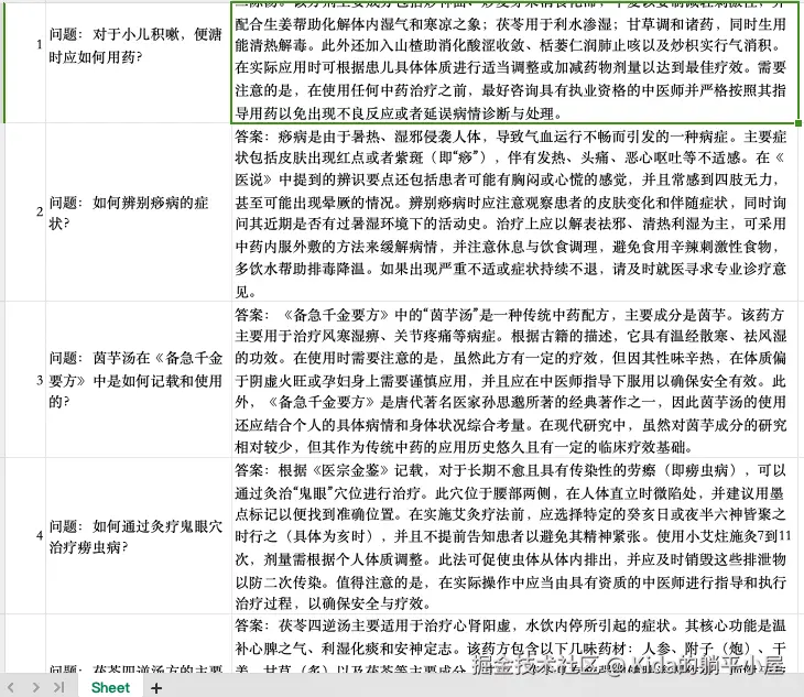 - 生成问答对的提示词需要优化,在提供的信息量不足的情况下,使用模型自身的数据;