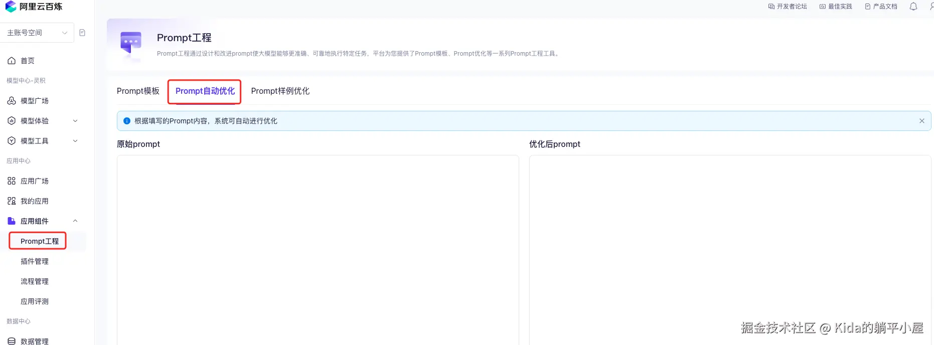 这里我选择了阿里云百炼的“Prompt 工程”进行提示词自动优化,如下图: