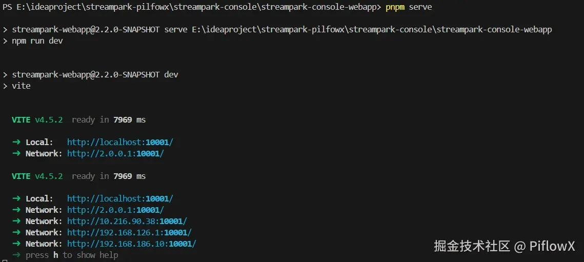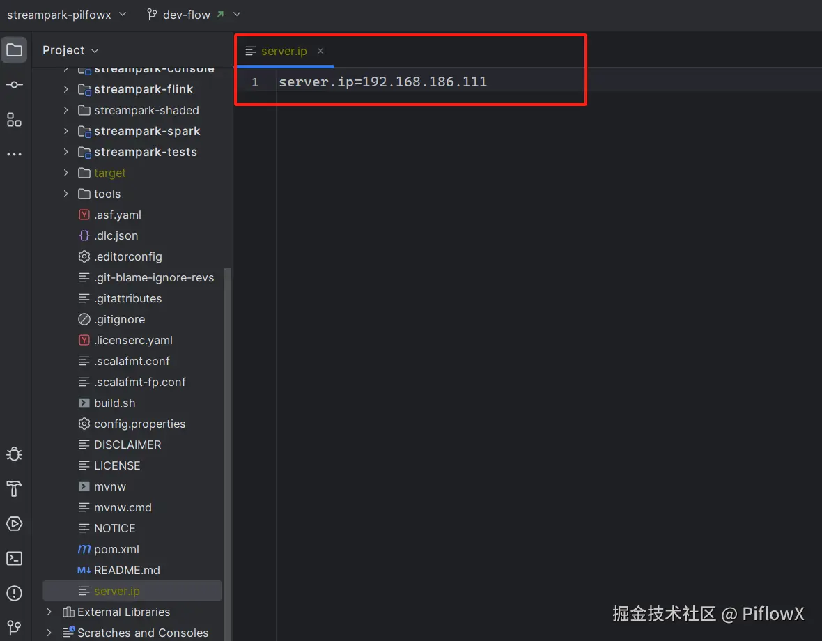 streampark-console-service服务baseConfig.properties配置文件,piflowx.server.ip为上述server.ip