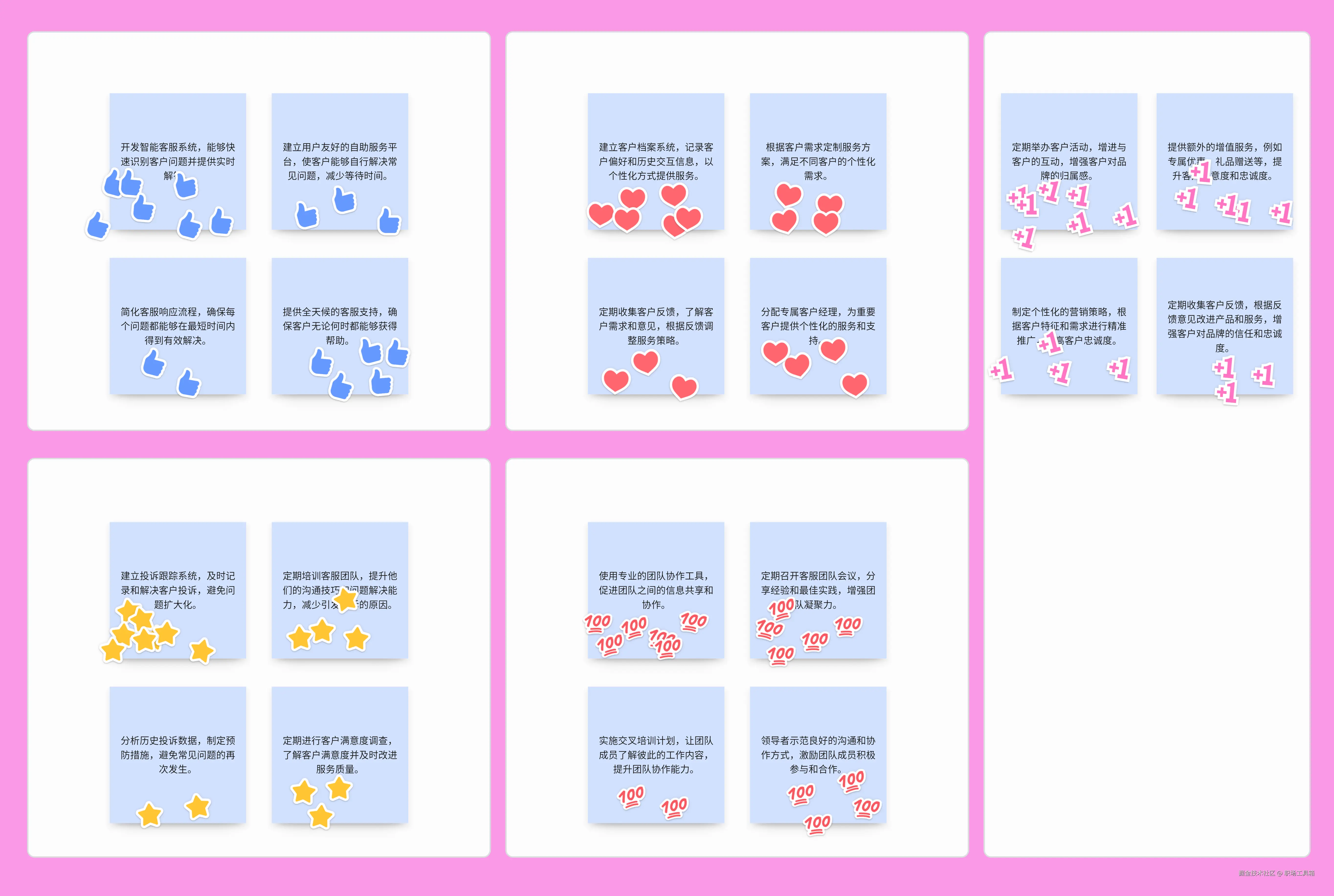 客户服务体验改善计划头脑风暴模板是一个集思广益的过程,旨在收集团队成员关于如何改进客户服务体验的创意和建议。这个模板帮助公司不断优化客户服务体验,满足客户需求,提升市场竞争力。