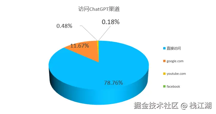 从2022年11月ChatGPT推出后我也发现同事、朋友或自己的圈子内或多或少都会提到ChatGPT。当然一般非技术人员真正注册或使用过的并不多,大多是使用了第三方的微信小程序或公众号的类ChatGPT产品体验一下,并没有使用官方的ChatGTP产品。对于搞技术的人基本上就使用过官方的ChatGTP及体验使用免费的openai key。但不论如何,大家都在使用ChatGPT或类ChatGPT产品。其实我感觉ChatGPT就像是个原子弹爆炸,那么这个原子弹,它的威力到底会有多大呢?我们来看看以下数据。