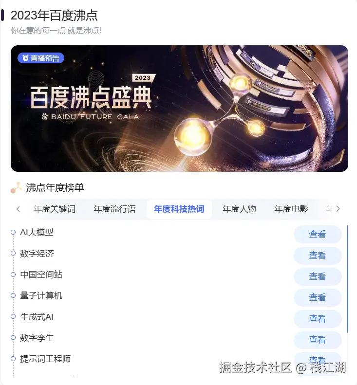 2023年百度沸点年度榜单已发布,可以看到AI大模型遥遥领先。