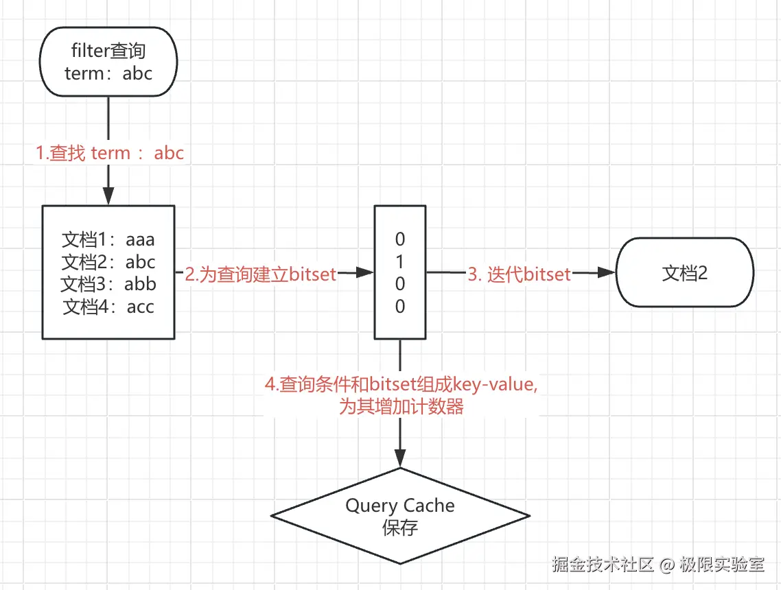 仔细去看 Elastic 的文档可以发现,在 filter 的使用介绍里是这么写的Filter clauses are executed in filter context, meaning that scoring is ignored and clauses are considered for caching.这里不仅措辞严谨的说 filter 条件以 filter context 的方式执行,并做了超链解释。