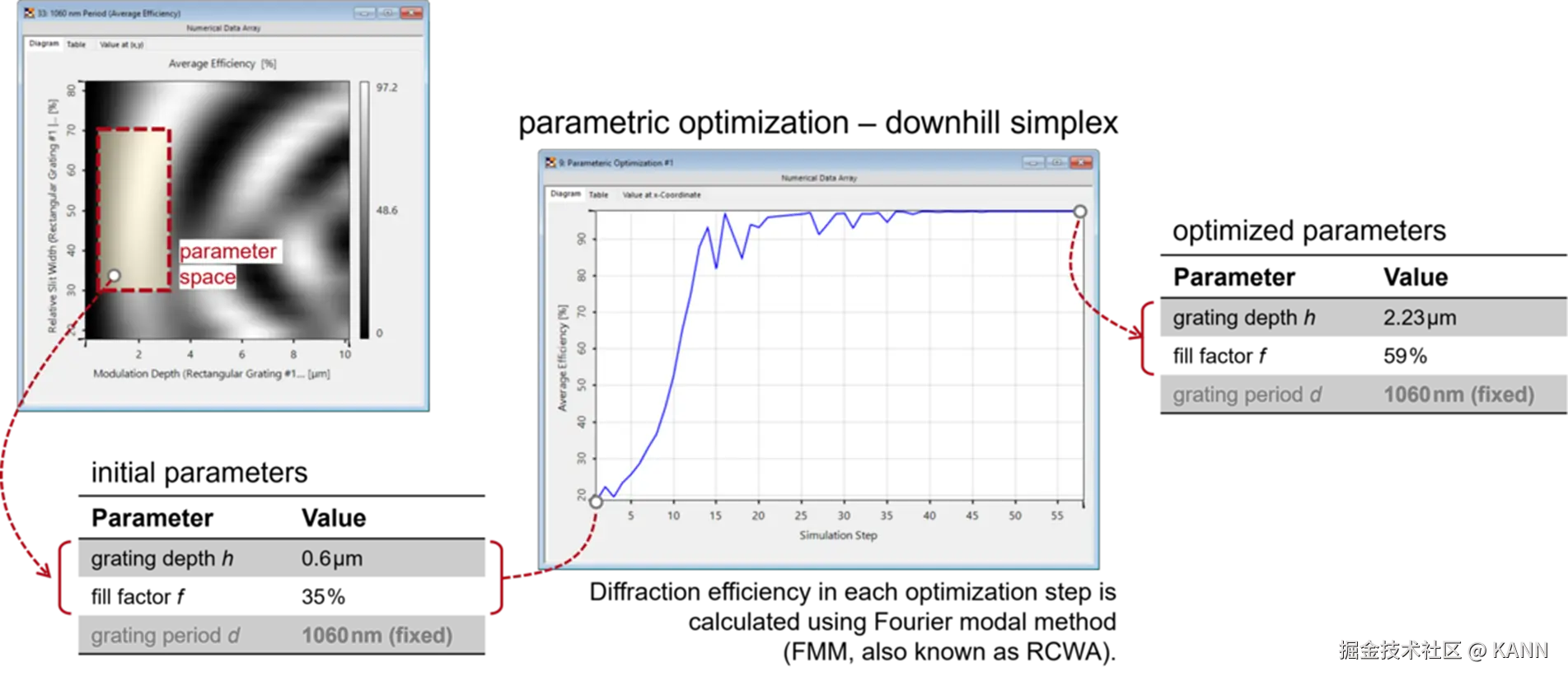 | “Littrow结构”是指那些包含反射光栅的光学系统,其中光栅方向被设置为可以使工作阶(通常是第一衍射阶)沿着入射光束的方向返回。这可以用于各种不同的应用,例如,在激光谐振器的背景下,光栅可以作为谐振器的反射镜之一,或在单色器和光谱仪中。 在本周的时事通讯中,我们展示了两个与Littrow配置中光栅相关的例子。首先,我们演示了如何利用VirtualLab Fusion中的参数耦合工具,根据波长和光栅周期自动调整光栅的方向和探测器的方向和位置,来确保Littrow条件满足。在第二个例子中,我们讨论了在Littrow配置下使用光栅的优化,目标是设计光栅结构,使其偏振效应最小化。 闪耀光栅的Littrow配置 |