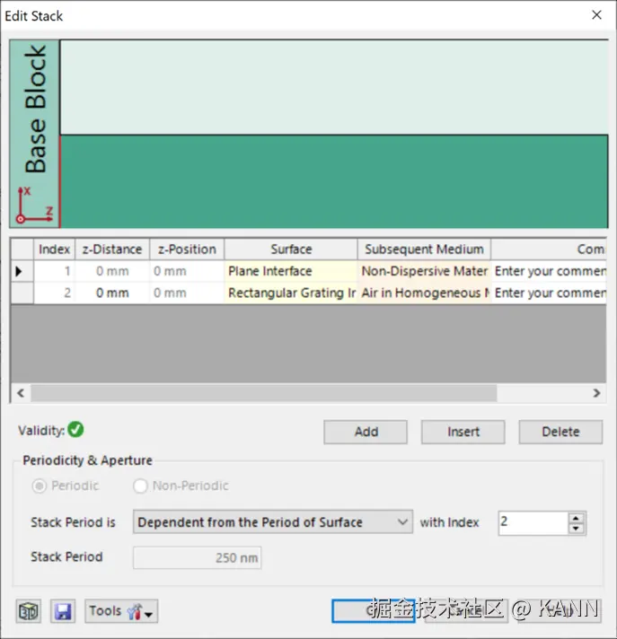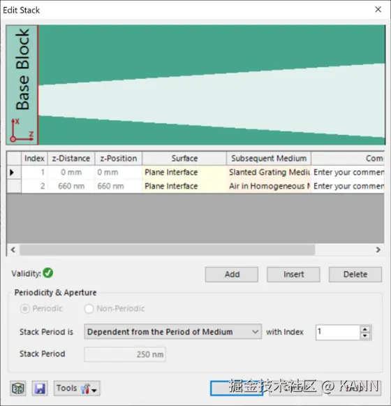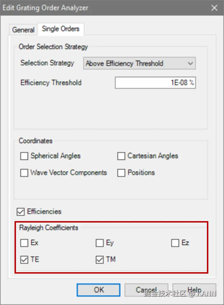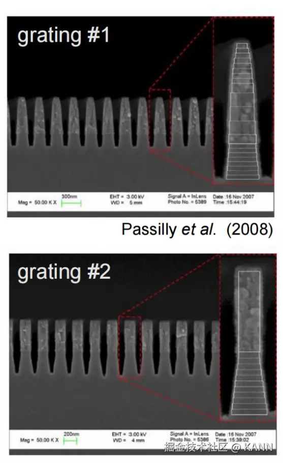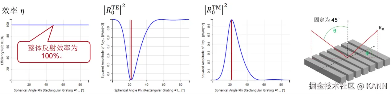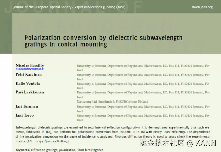 摘要 光栅结构广泛应用于各种光学应用场景,如光谱仪、近眼显示系统、脉冲整形等。快速物理光学软件VirtualLab Fusion通过使用傅里叶模态方法(FMM,也称为RCWA),为任意光栅结构的严格分析提供了通用和方便的工具。为此,复杂的一维或二维周期结构可以使用界面和调制介质进行配置,这允许任何类型的光栅形貌进行自由的配置。在此用例中,详细讨论了衍射级次的偏振态的研究。 任务说明 简要介绍衍射效率与偏振理论某个衍射级次(𝑛)的效率表示有多少的辐射功率被衍射到这个特定的级次中。它是由复数值瑞利系数计算出来的,瑞利系数包含了每个衍射级次(矢量)电磁场的全部信息。瑞利系数本身是由FMM对光栅的特征值问题进行严格分析的结果。如果在TE/TM坐标系(CS)中给出瑞利系数,则可以计算衍射效率: 其中,n_in/n_out为覆盖层和衬底层的折射率,ϑ_in/ϑ_out为所分析的阶次的入射角和衍射角。此外,𝐴表示辐射光的振幅。如果瑞利系数沿𝑥、𝑦和𝑧给出瑞利系数,则必须应用以下方程: 因此,必须考虑所给出的瑞利系数的坐标系。默认情况下,光栅坐标系中为 。光栅结构参数研究了一种矩形光栅结构。为了简化设置,选择光栅配置,只允许零阶(R_0)反射传播。根据上述参数选择以下光栅参数:光栅周期:250 nm填充因子:0.5光栅高度:200 nm材料n_1:熔融石英(来自目录)材料n_2:二氧化钛(来自目录) 偏振态分析现在,用TE偏振光照射光栅,并应用圆锥入射角(𝜑)变量。如前所述,瑞利系数的平方振幅将提供关于特定级次的偏振态的信息。为了接收瑞利系数作为检测器的结果,需要选择光栅级次分析器件中的单个级次输出,并选择所需的系数。 模拟光栅的偏振态 瑞利系数现在提供了偏振态的信息:在圆锥入射角为0(𝜑=0)时, 。这说明衍射光是完全偏振的。对于𝜑=22°, 。此时,67%的光是TM偏振的。对于𝜑>50°,系数接近为常数,因此偏振态也是常数。 Passilly等人更深入的光栅案例。Passilly等人的工作研究并优化了亚波长光栅下衍射光谱的偏振态,以获得不同状态之间的高度转换。因此,他们将模拟结果与制作样品的测量数据进行了比较。 光栅结构参数在本文中,研究了两种不同的制备光栅结构。由于加工造成的光栅的理想二元形状的一些偏差是可以预料的,而且确实可以观察到:在基板和侧壁上存在不完全平行的欠刻蚀部分。由于缺少关于制作结构的细节,我们将其简化为VirtulLab Fusion中的模拟。但是如果有可用数据,就可以详细分析光栅的复杂形状。 光栅#1——参数假设侧壁倾斜为线性。忽略了衬底中的欠刻蚀部分。为了实现光栅脊的梯形形状,采用了倾斜光栅介质。光栅周期:250 nm光栅高度:660 nm填充因子:0.75(底部)侧壁角度:±6°n_1:1.46n_2:2.08 光栅#1——结果这两幅图对比之下匹配度很高,特别是图表的趋势。与参考文献相比,仿真中光栅结构进行了简化,存在一些小的偏差。由于缺乏关于实际的更详细的光栅结构的数据,这种简化是必要的。 光栅#2——参数假设光栅为矩形。忽略了衬底中的欠刻蚀部分。矩形光栅足以表示这种光栅结构。光栅周期:250 nm光栅高度:490 nm填充因子:0.5n_1:1.46n_2:2.08 光栅#2——结果这两幅图对比之下再次显示出非常好的匹配度,特别是图表的趋势。与参考文献相比,仿真中光栅结构进行了简化,存在一些小的偏差。由于缺乏关于实际的更详细的光栅结构的数据,这种简化是必要的。 文档信息 拓展阅读 - 超稀疏介质纳米线栅偏振器- 抗反射蛾眼结构的严格分析与设计 |