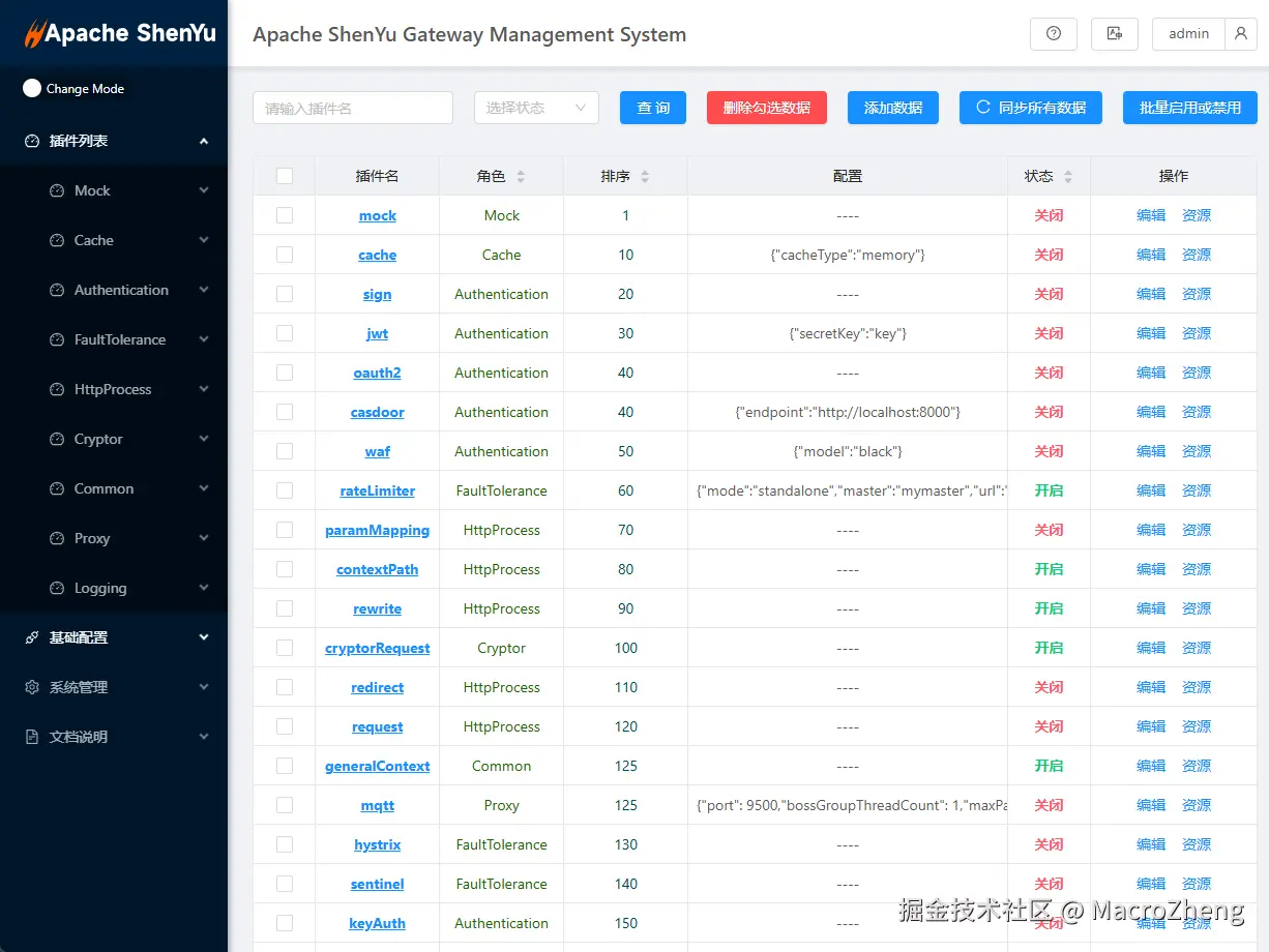 今天给大家分享了下ShenYu这套网关系统的使用,依赖于丰富的插件生态,它的功能非常强大,设计也很优秀,之前使用Gateway修改代码才能实现的功能,在ShenYu上基本都可以实现可视化管理,感兴趣的小伙伴可以尝试下!