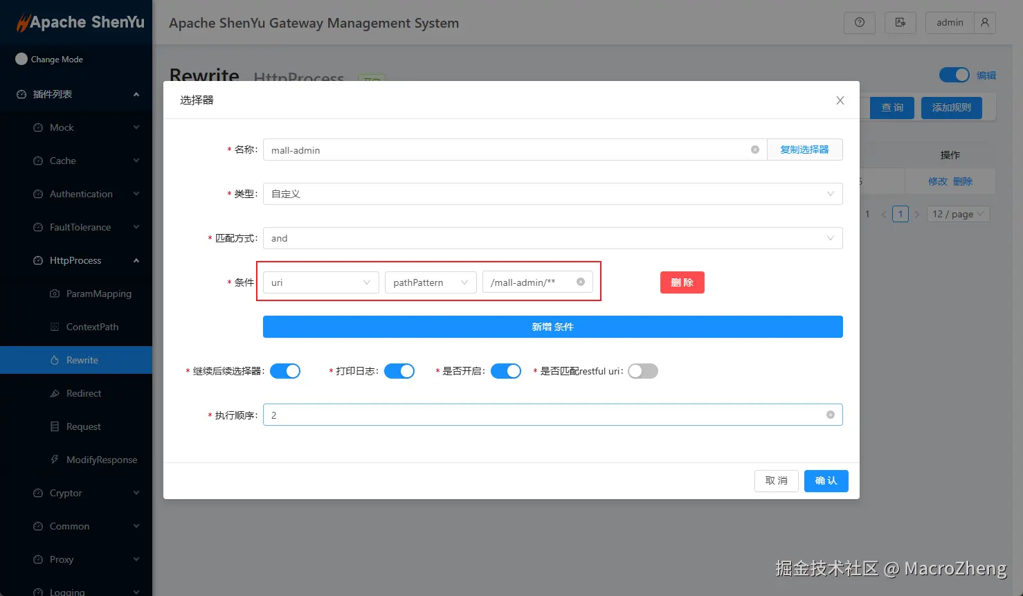 插件列表->HttpProcess->Rewrite中添加选择器;