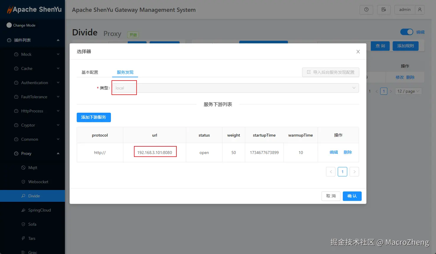 local,下游服务url为192.168.3.101:8080,如果你有多个服务添加的话可以实现负载均衡;
