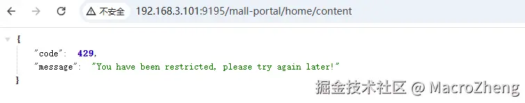 mall-portal中的某个接口,会提示你已经被限流了,接口地址:http://192.168.3.101:9195/mall-portal/home/content