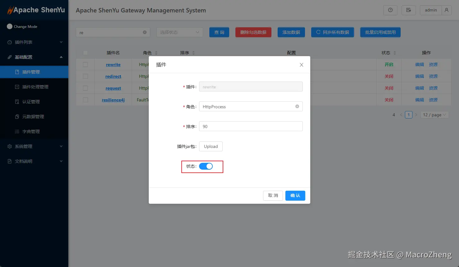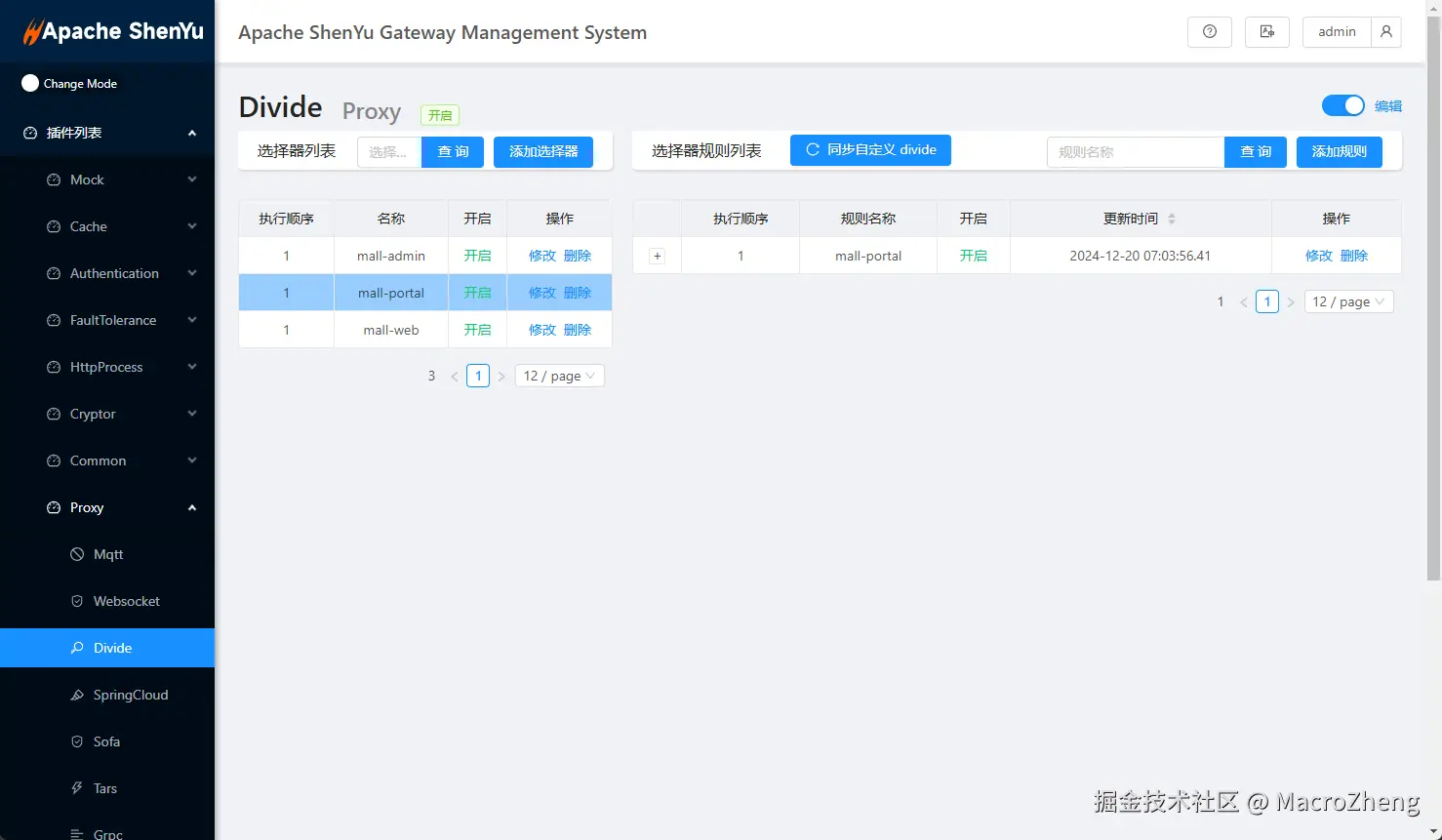 shenyu-admin的可视化管理页面了,默认账号密码(admin:123456),访问地址:http://192.168.3.101:9095