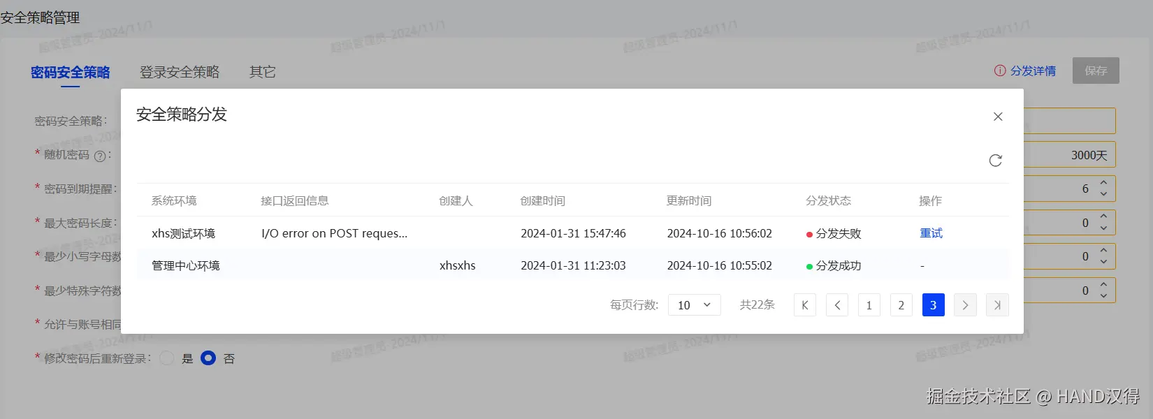 您可通过点击分发详情按钮查看具体的同步情况,对于因网络波动等原因同步失败的安全策略,可点击重试按钮手动触发再次分发。