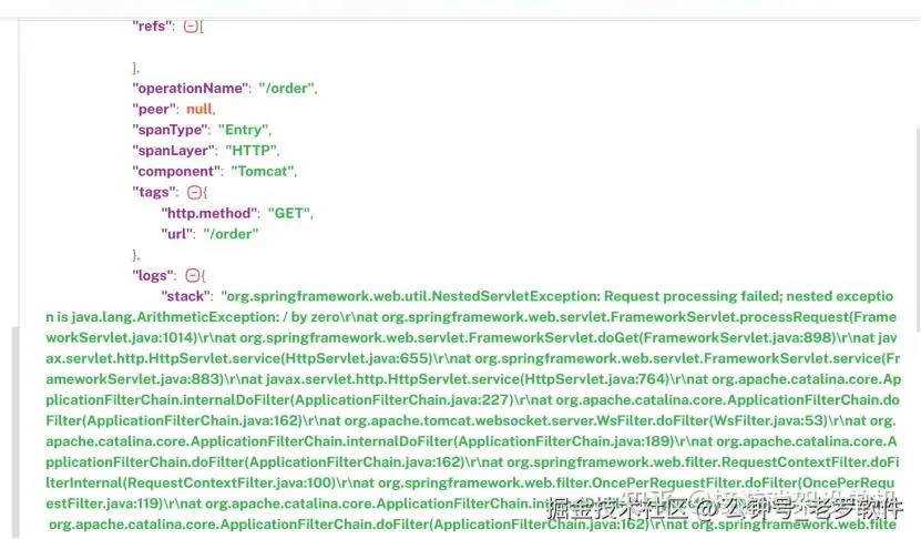 测试发现上报的链路数据中并没有log出现。原因是handleMethodException并没有执行,也就是说这种异常不会在StandardHostValve类的invoke方法中被抛出来。其实StandardHostValve类还有一个throwable方法,异常会走这个方法。