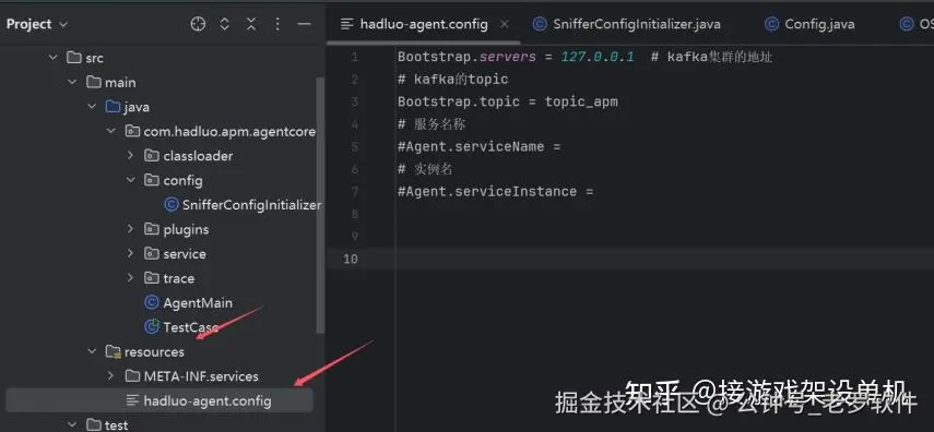 新建 hadluo-agent.config 配置文件放到resource目录下: