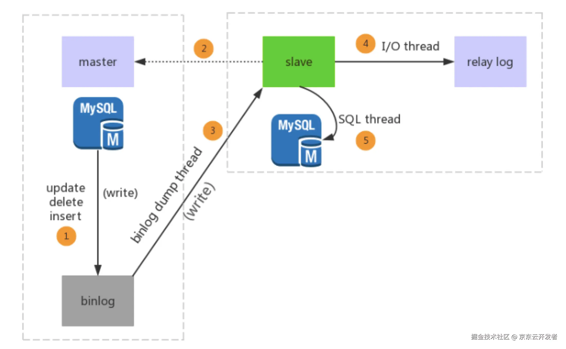 ①Master节点进行insert、update、delete操作时,会按顺序写入到binlog中。