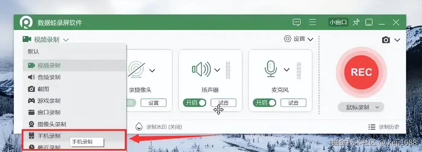 数据 蛙录屏软件有专业的【手机录制】模式,在录制过程中,可以自由选择是否录制声音,以及调整录制的帧率和视频质量。录制完成后,软件还提供丰富的后期编辑功能,如剪辑、合并、添加特效等。 视频录制怎么把声音录进去?下面就是软件录制的操作步骤: