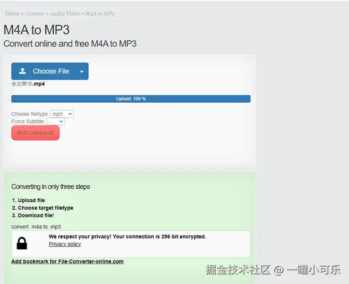 Compress-video也是免费格式转换网站,与Aconvert网站相比,其亮点在于提供了用户数据文件的保护功能,可以在一定程度上保护用户上传的文件内容不被泄露,但同样的弊病是有较多的广告弹窗。下面是具体的操作步骤介绍。