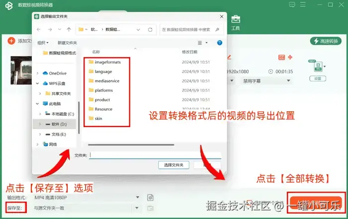 步骤3:返回转换界面,点击【保存至】选项,设置转换格式后的视频的导出位置,然后点击【全部转换】即可。