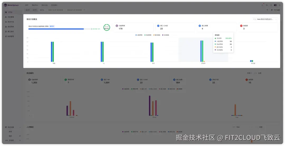 在这一版本中,MeterSphere工作台模块首页新增测试计划概览功能,支持通过点击统计指标一键跳转至相应模块,帮助管理者快速掌握测试进度,识别测试瓶颈。