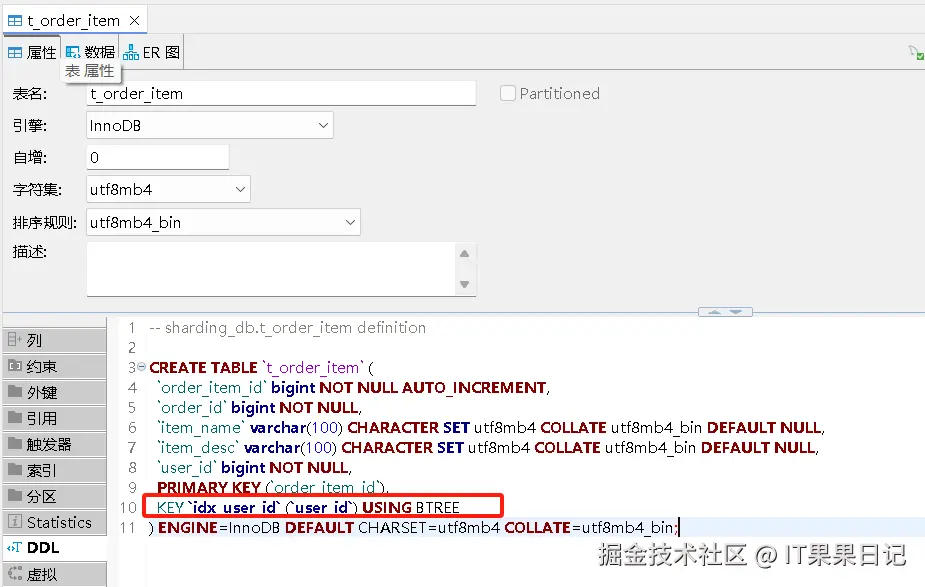 同样在逻辑库和真实库的 t_order_item 表都创建了索引。删除索引也是一样的。