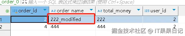 update t_order set order_name = '222_modified' where order_id = 2;