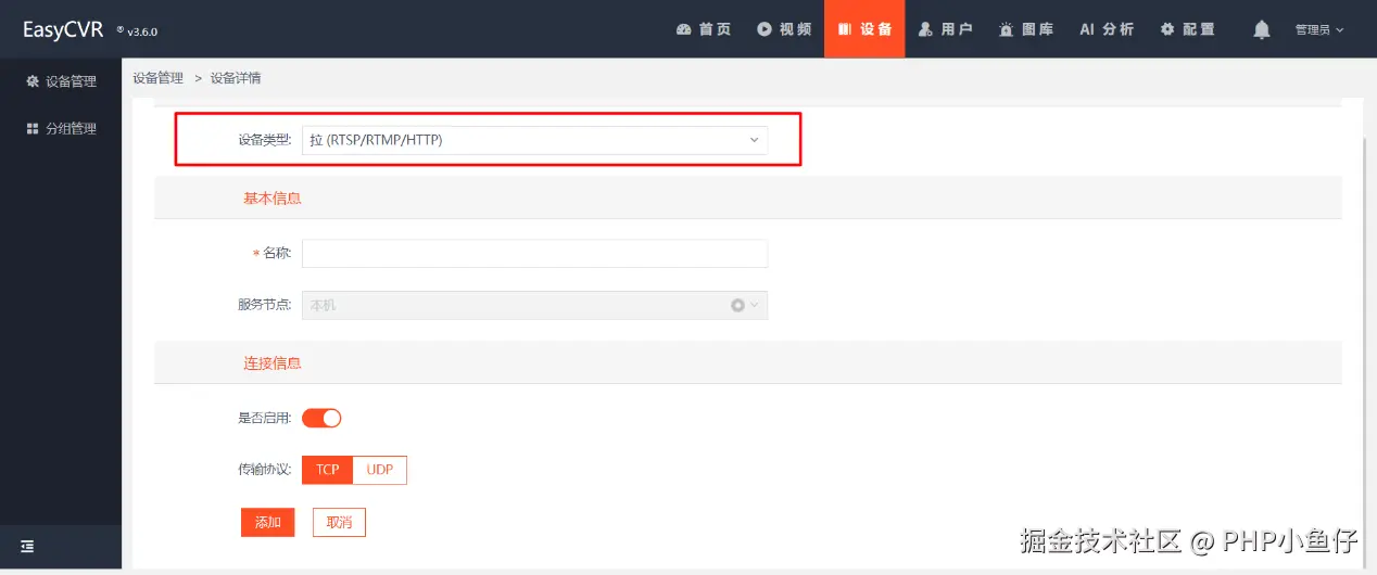 1)在EasyCVR平台中,点击“添加设备”,选择【拉(RTSP/RTMP/HTTP)】;