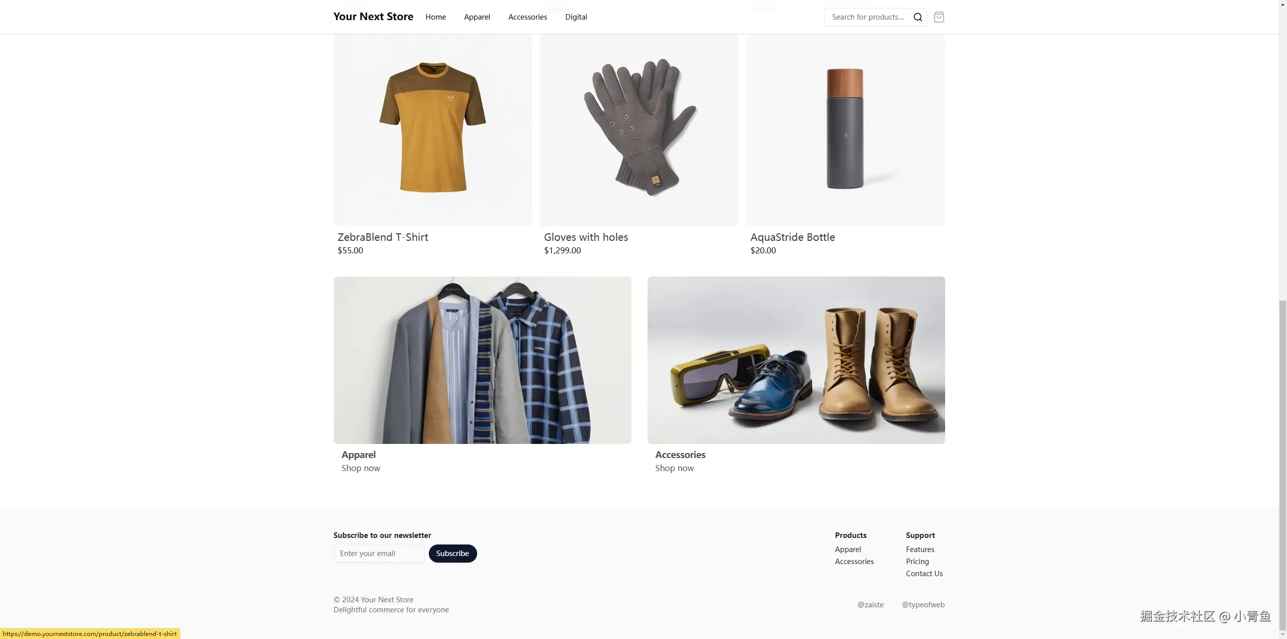 1、找到自己的对标网站,然后截图,如下为我找到的参考网站的截图(这里截图最好是找能涵盖尽可能全信息的页面)这里有头部-中间商品部分以及 页脚部分。