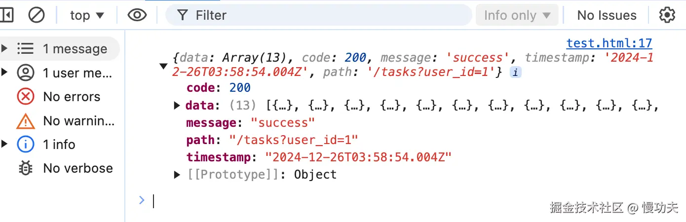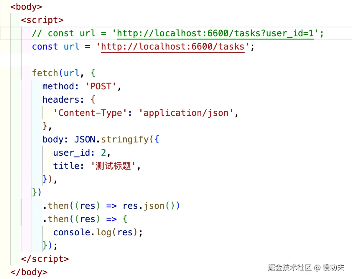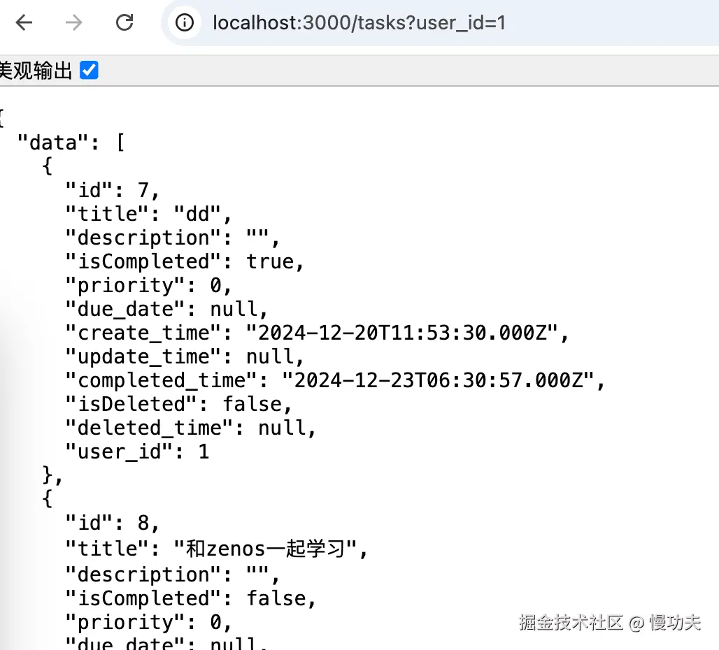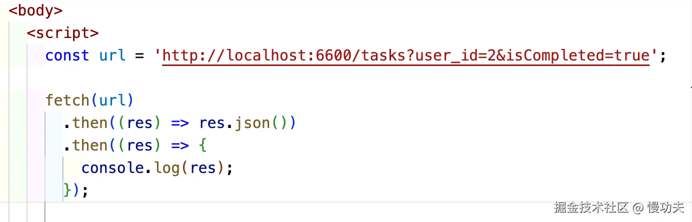 下面试试访问本地接口的例子,用 fetch 请求http://localhost:3000/task?user_id=1: