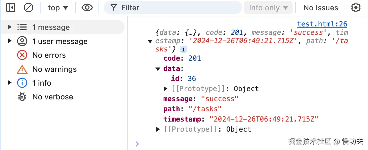 执行代码,查看控制台: