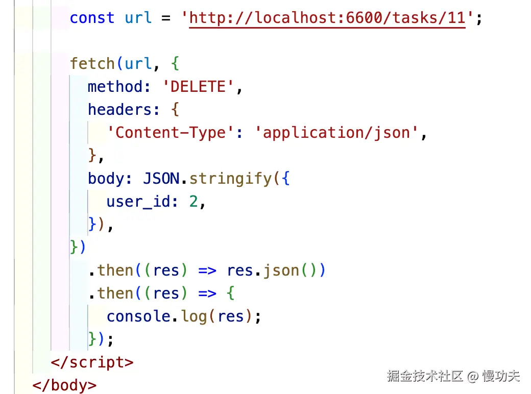 fetch(url, {method: 'DELETE'}); // 发送DELETE请求