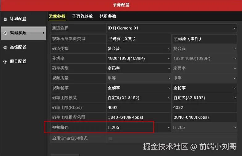 主流厂商,如海康、大华的编码设备(摄像机、录像机)都是支持多编码的。以海康为例: