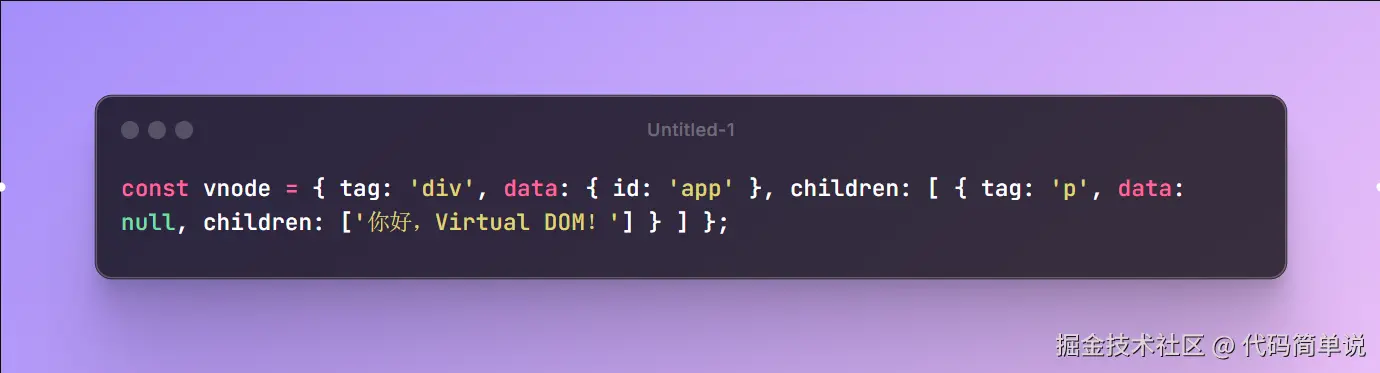 听起来高大上,其实就是一个用 JavaScript 对象描述 DOM 的轻量化模型!