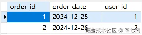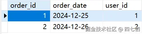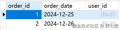 order_id = 1的user_id的值变为NULL,order_id = 2的user_id的值变为NULL,