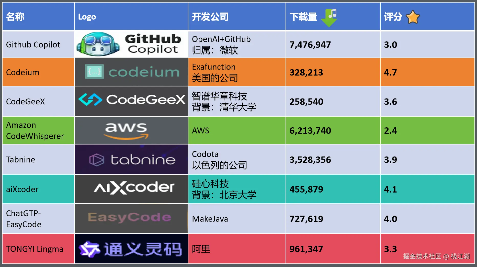 当然除了 Github Copilot 外还有很多优秀的 AI 编程助手,如Cursor、字节 MarsCode、阿里通义灵码、百度文心快码、CodeGeeX、代码小浣熊、iflycode、Amazon CodeWhisperer、Tabnine、Replit Ghostwriter、Codeium 等等