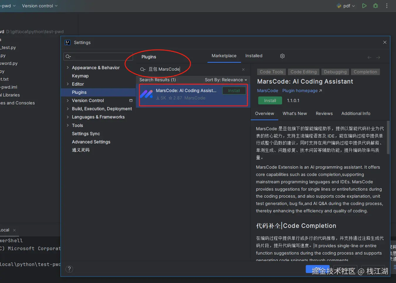 JetBrains与 Visual Studio Code都可以安装,比如下面就是JetBrains Idea中编程助手的安装,在市场搜索后进行安装