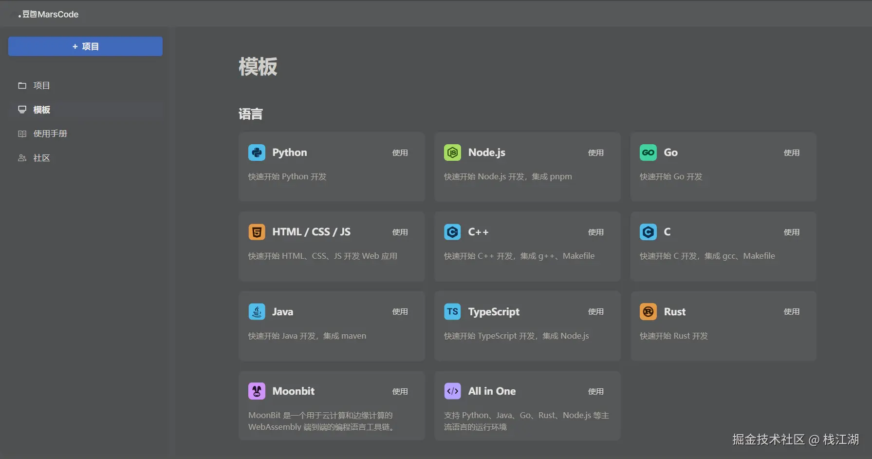 项目模板目前支持Python、Go、Java等语言,还支持不少Web开发的框架