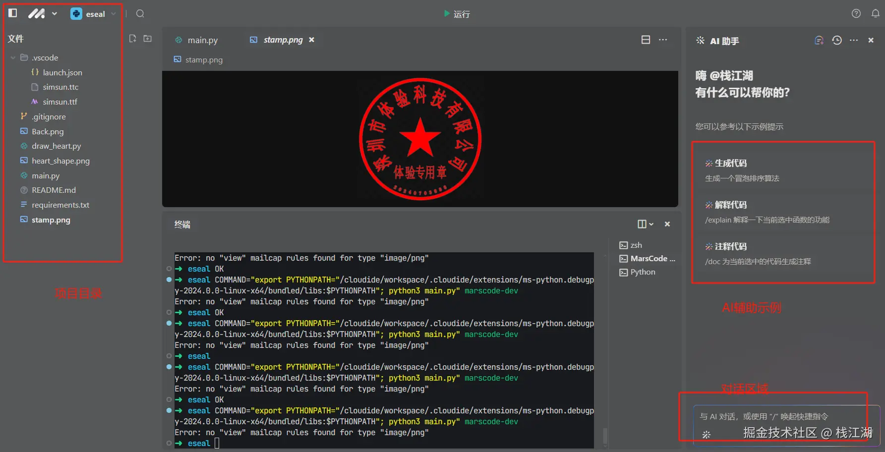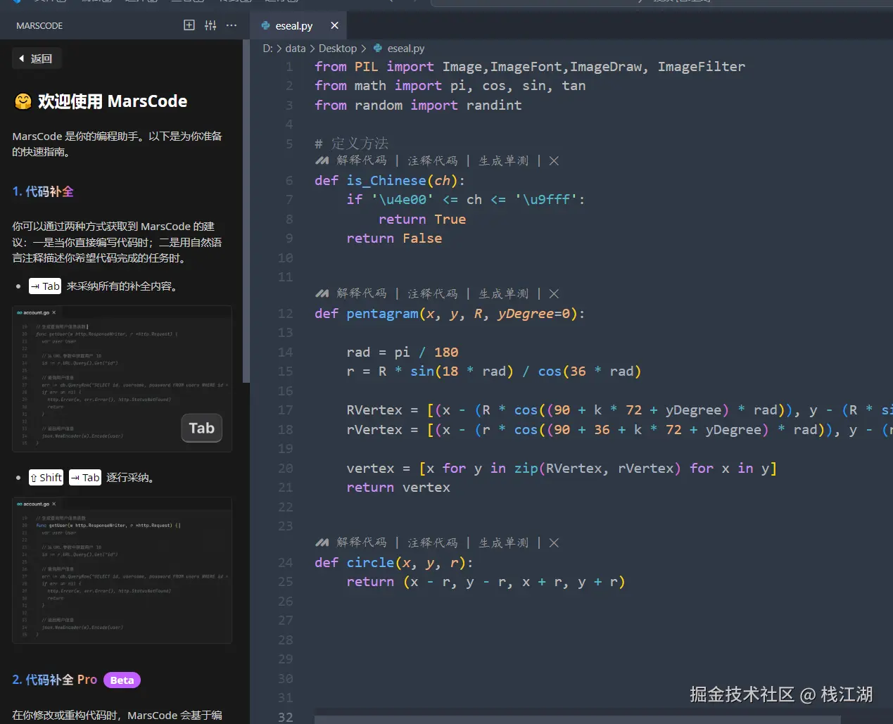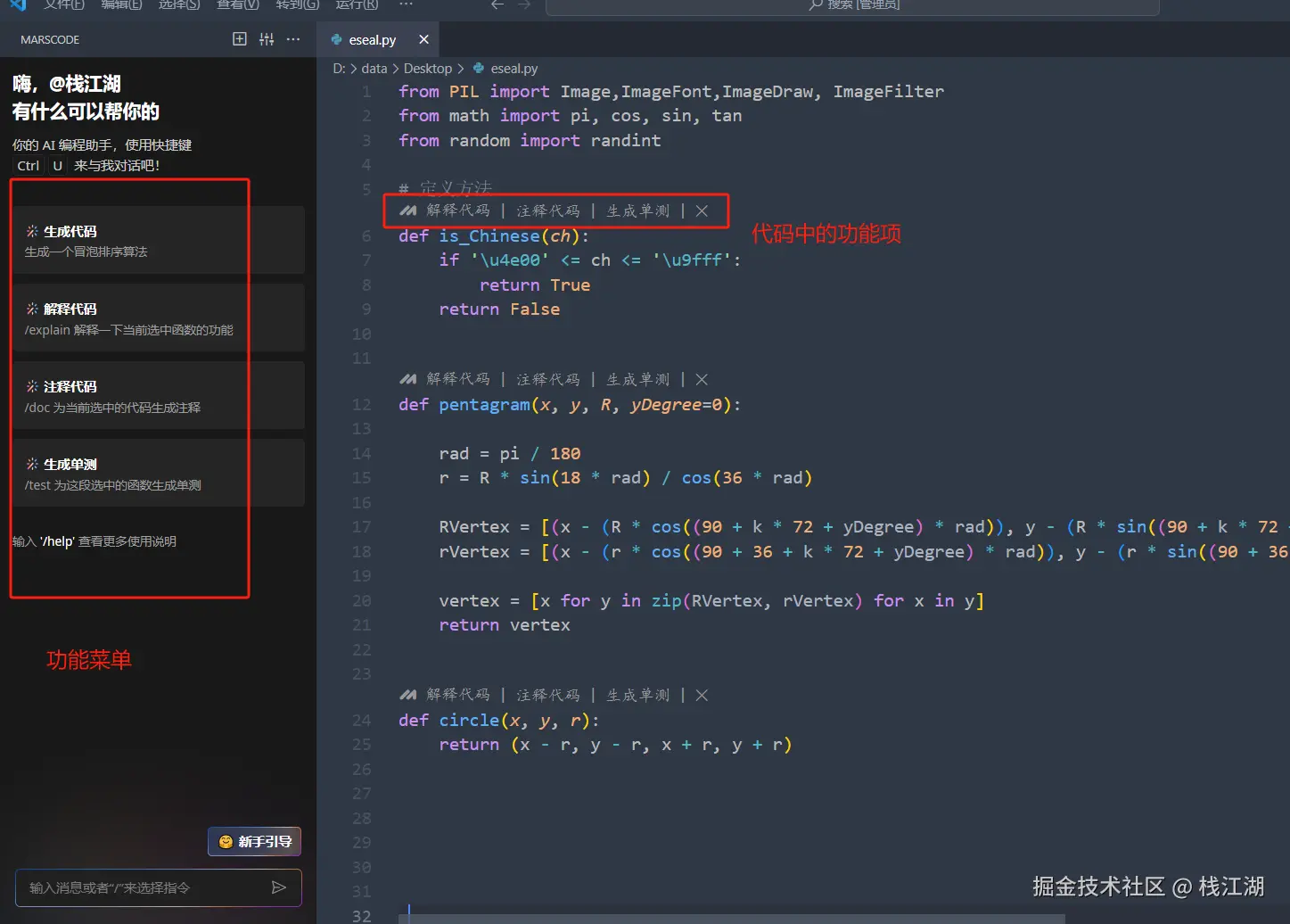 - AI 智能问答 你可以从 MarsCode 的 AI 聊天功能中得到开发问题的答案:比如代码解释,生成注释和快速生成单元测试。