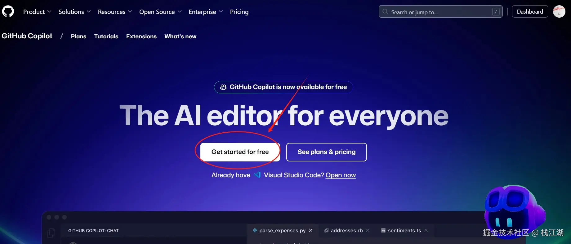 使用 GitHub Copilot Free 非常简单: