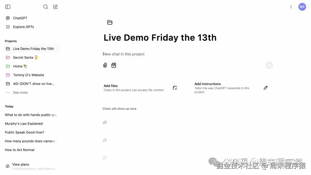 1、推出 Projects 功能,让 ChatGPT 变得更像一个个人助理或工作平台,有了知识库和多个对话记忆;