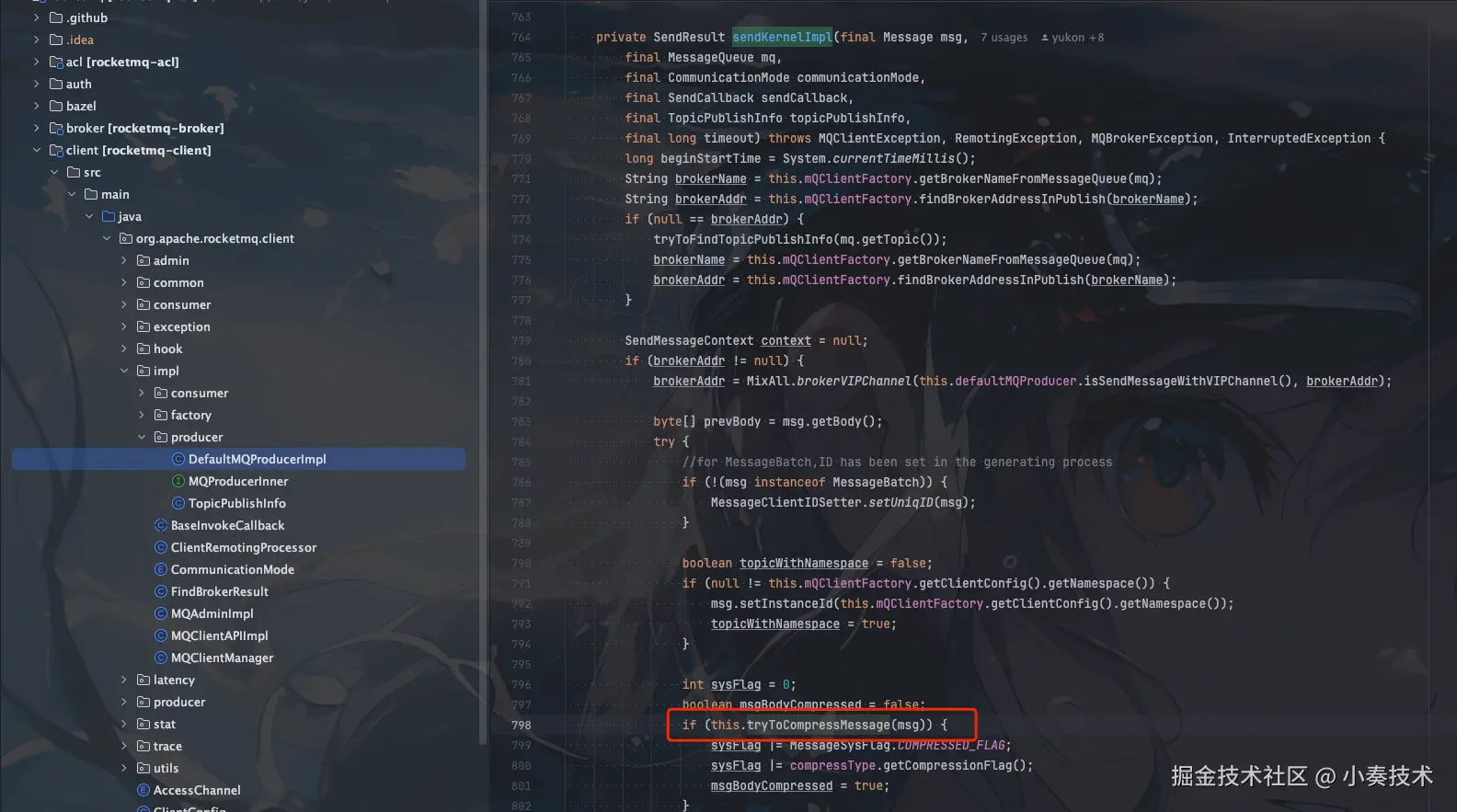所以我打算结合源码告诉他RocketMQ自带的消息压缩