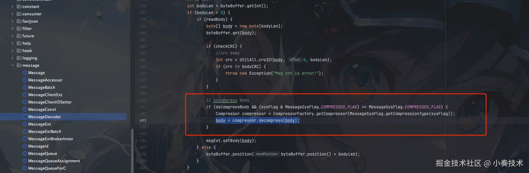 decode方法会对消息进行解压