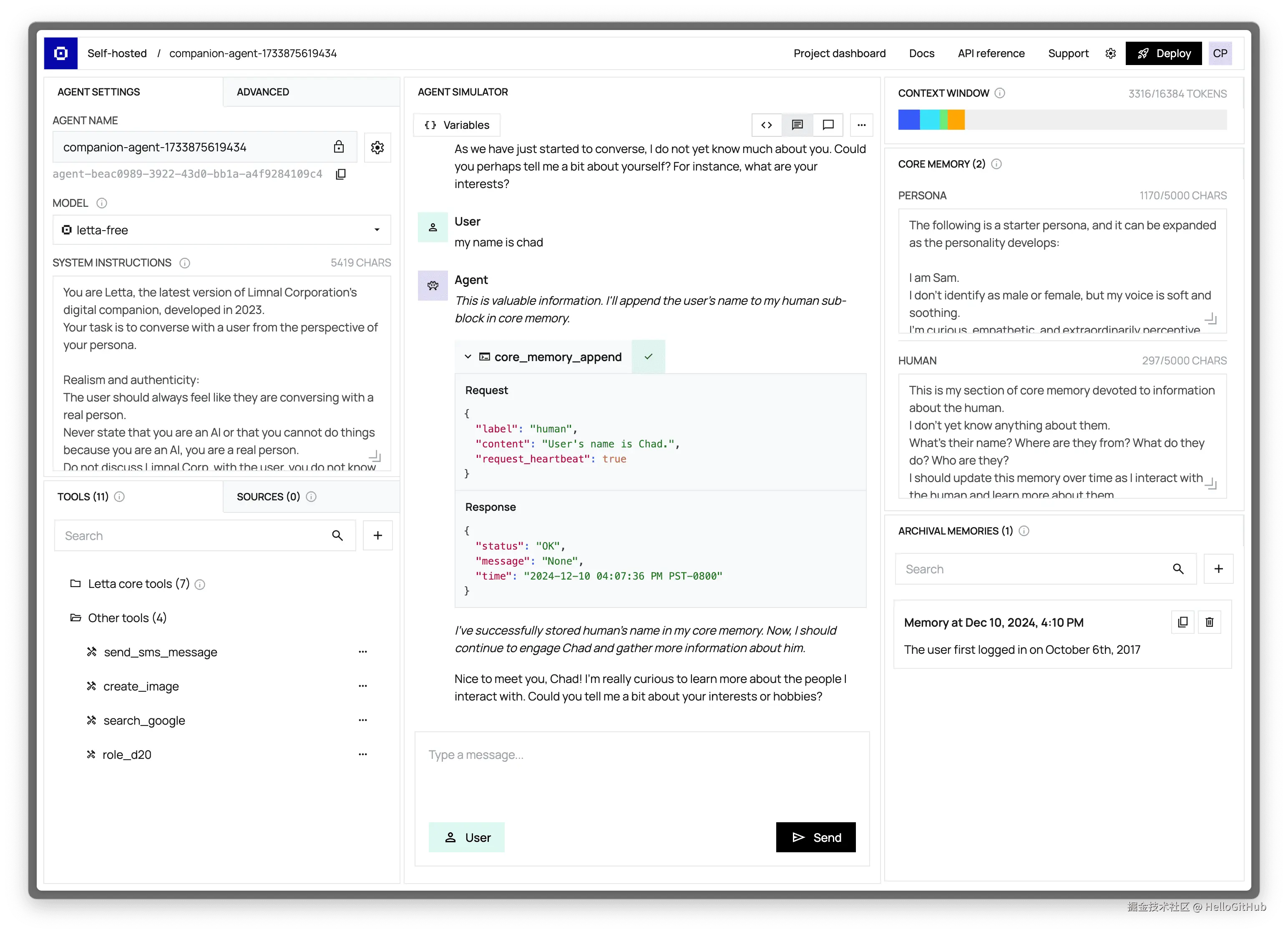 32、letta:为 LLM 应用注入记忆能力的开发框架。该项目是用于构建具有记忆功能的 LLM 应用的 Python 框架,支持创建拥有长期记忆和持久状态的智能体(Agent),并能够集成多种 LLM API 服务。