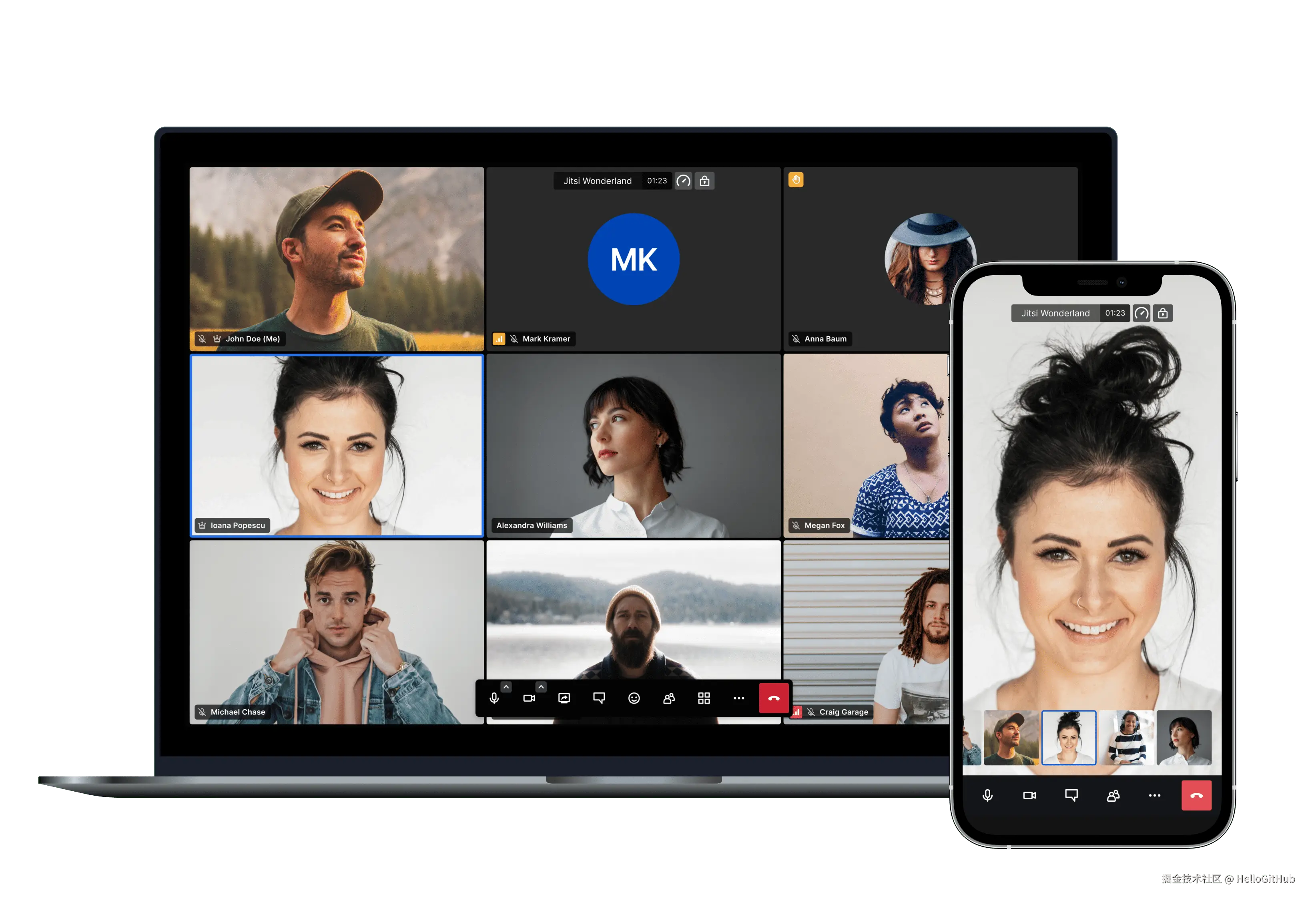 18、jitsi-meet:开源的视频会议平台。这是一个基于 WebRTC 构建的视频会议平台,提供高清音视频质量,支持私聊、举手、投票和虚拟背景等多种功能,兼容所有主流浏览器和移动平台。